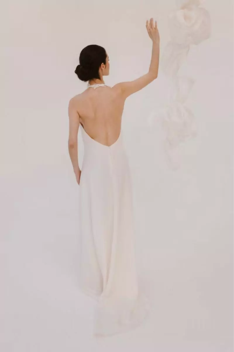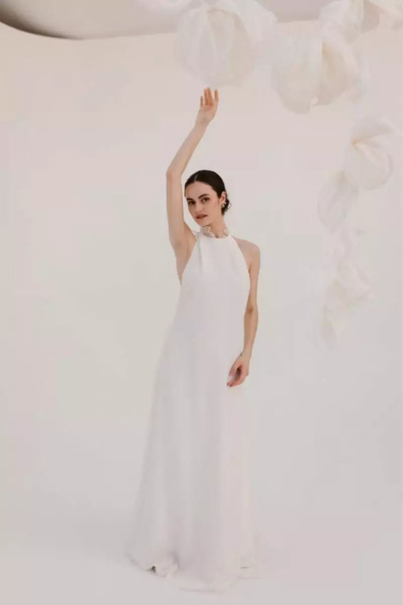 Robe de mariée élégante et minimaliste en crêpe de soie.