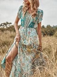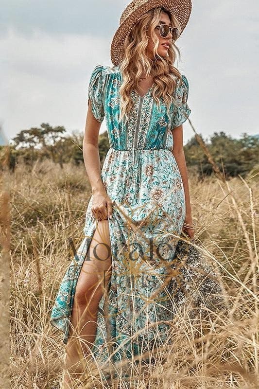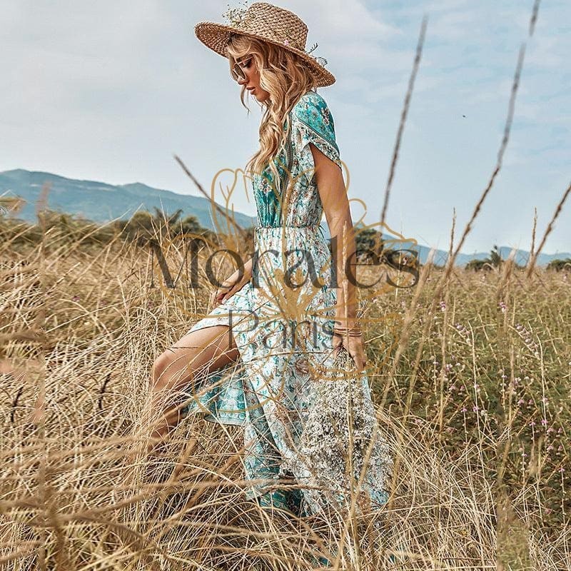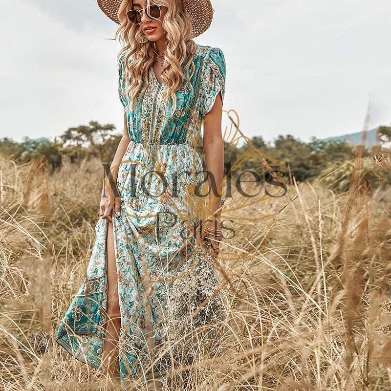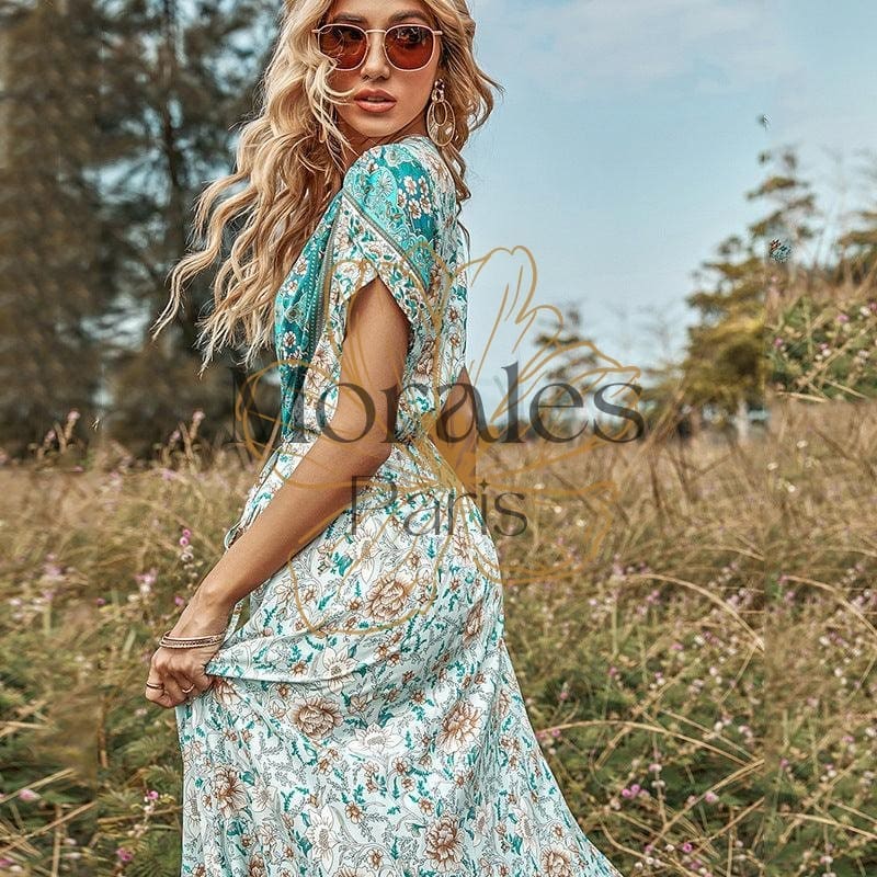 Cette robe longue boho s’adapte parfaitement à votre personnalité libre. Avec son motif fleuri et sa matière douce et fluide, elle deviendra un incontournable de votre garde-robe pour les beaux jours. Portée seule ou associée, cette robe polyvalente vous accompagnera de la plage au dîner en un clin d’oeil.