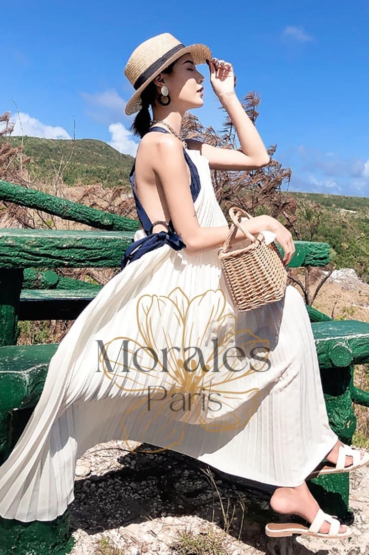 Robe blanche bohème d’été dos nu
