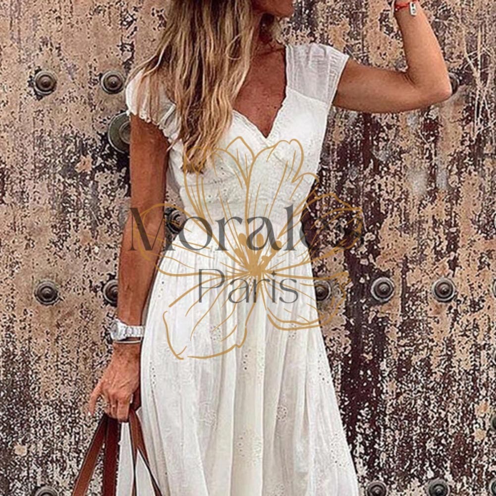 Craquez pour un vêtement long bohémien qui saura mettre en valeur votre look pour tous les évènements. Ce vêtement révèle votre côté romantique et féminin pour vous permettre de briller lors de vos soirées. Sa dentelle délicate se démarque des autres modèles pour un style vintage et élégant. N’hésitez pas à porter ce vêtement bohème chic pour une cérémonie de mariage.