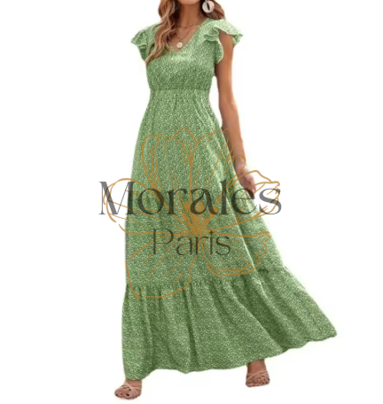 Robe Longue Champêtre Vert Opaline