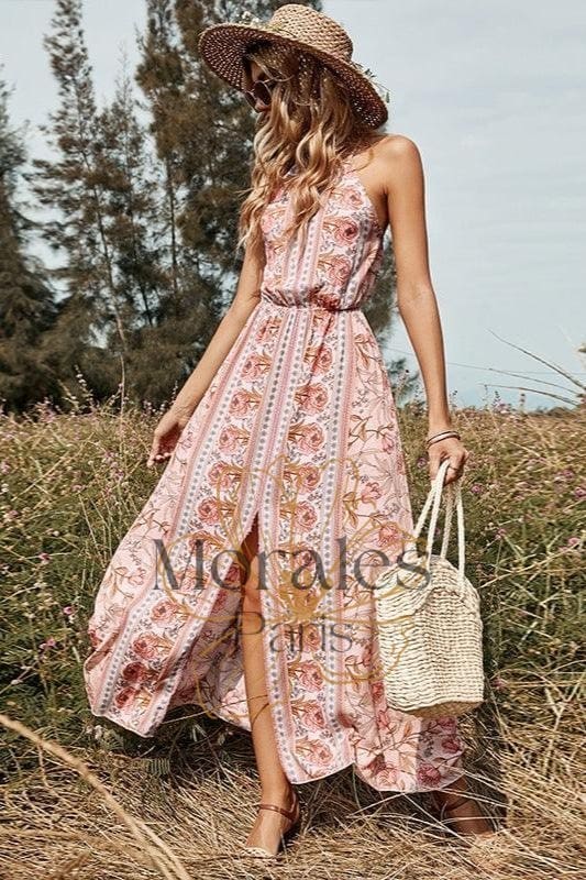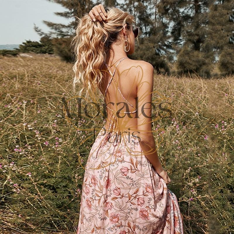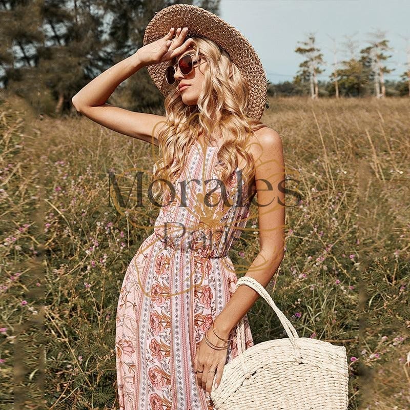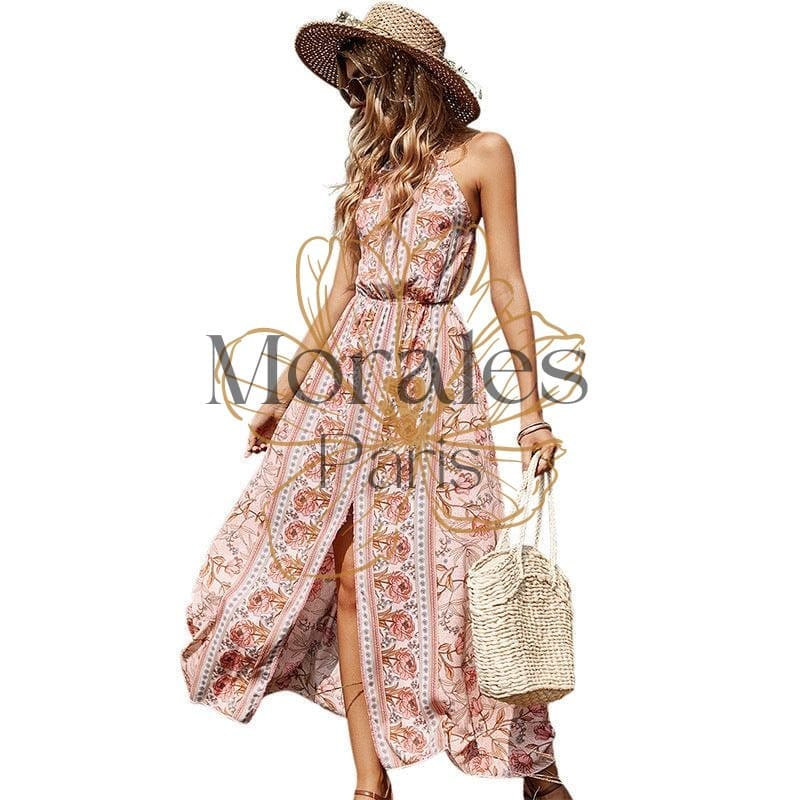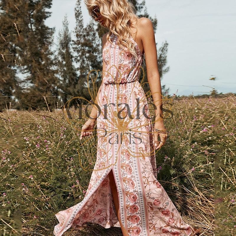 Avec l’arrivée des beaux jours, rien de tel qu’une maxi-robe légère pour vous tenir fraîche et élégante. Notre robe longue hippie est conçue en coton 100% et s’accorde parfaitement avec les chaudes journées d’été. Elle est ornée d’un motif bohème aux tons de rose, de vert et de bleu. Vous l’apprécierez pour vos vacances ou pour toutes les occasions spéciales au cours de la saison estivale.