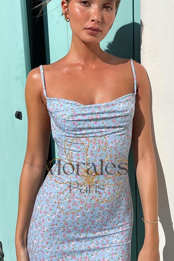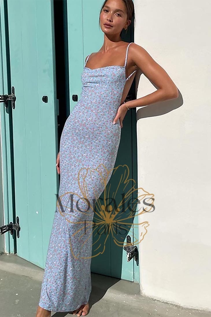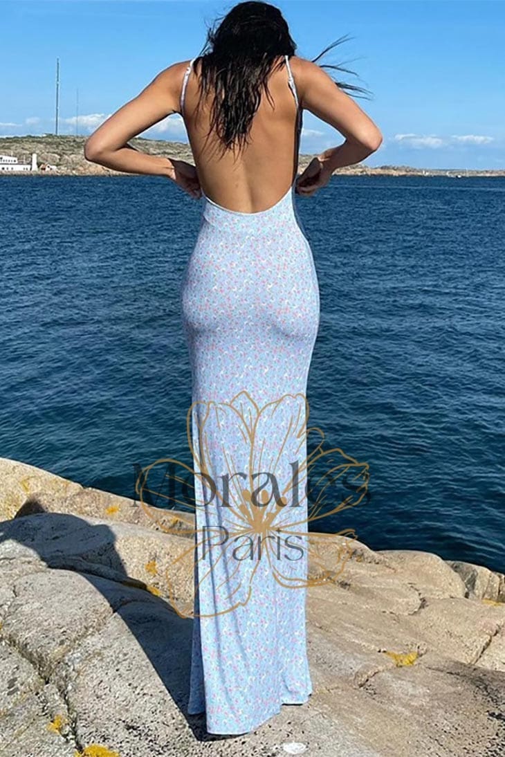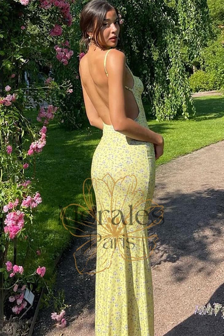 Cet élégant vêtement présente une coupe droite et moulante qui met votre silhouette en valeur. Son dos nu et ses fines bretelles donnent une touche de sensualité, tandis que son motif floral vous fera voyager dans un monde de douceur.