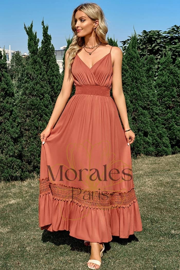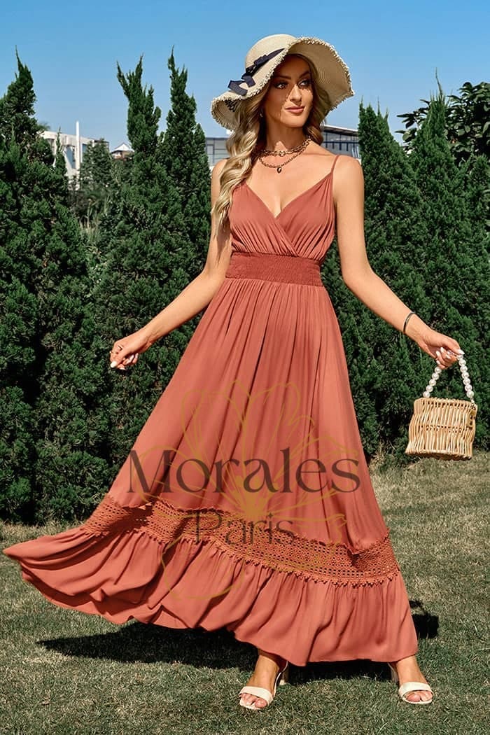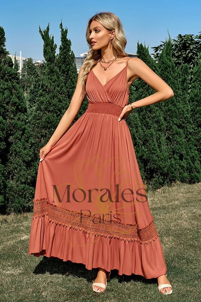 Cette robe combine parfaitement les styles bohème et champêtre et offre un charme incomparable ! Avec sa longueur maxi et sa coupe fluide, elle est à la fois élégante et légère.