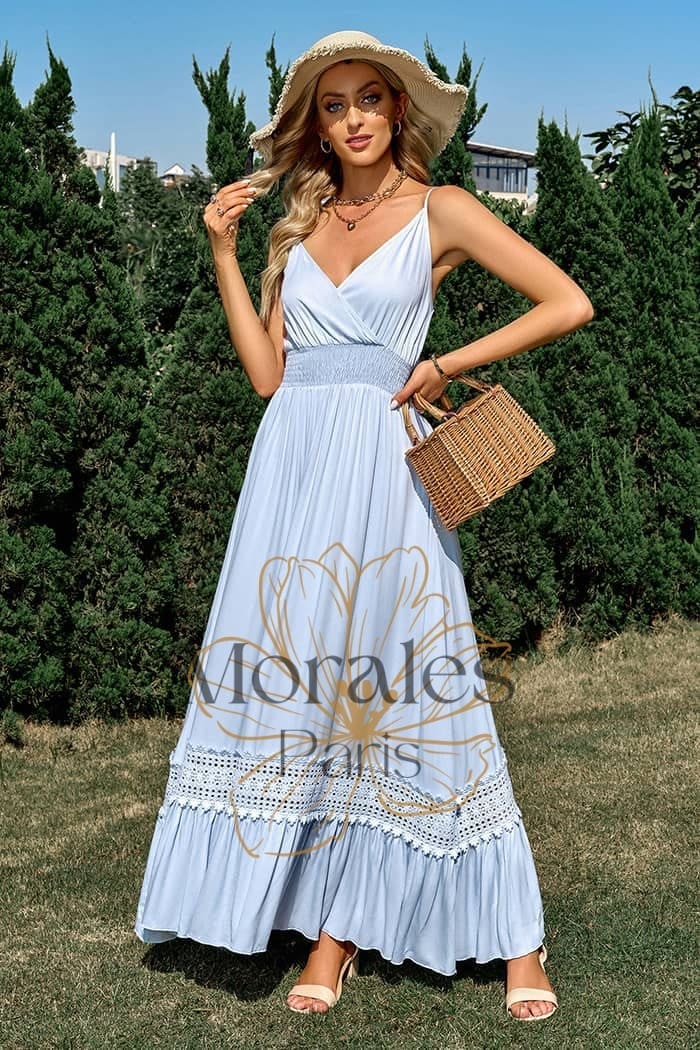 La coupe évasée rend la robe plus aérienne et la décolleté en V et le dos nu apporte une touche féminine supplémentaire. Les coloris pastel de cette robe allient à merveille le style boho chic et le style champêtre pour un look unique.