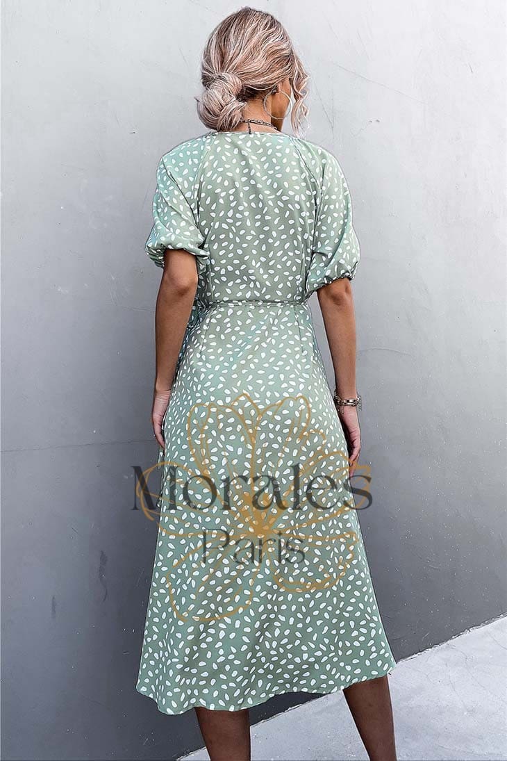 Cette Robe Longue Bohème est parfaite pour passer des vacances d’été ! Le tissu en mousseline léger et l’imprimé floral à pois rehausseront votre silhouette, tandis que les manches mi-longues et le col en V offrent une jolie forme. La jupe de style portefeuille est à la fois chic et pratique, ce qui en fait un indispensable de votre garde-robe.