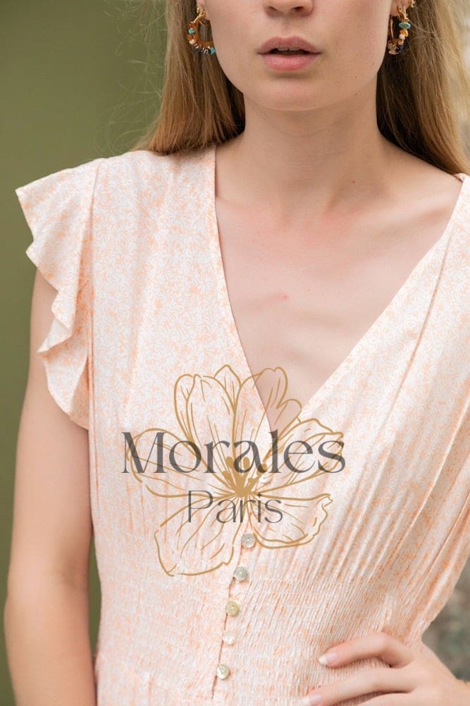 Robe longue bohème abricot Incontournable des garde-robes bohème, cette robe longue est faite d’un tissu doux et fluide. Son décolleté en V est orné d’un rang de boutons et ses manches courtes sont volumineuses. Sa taille smockée met en valeur la silhouette sans compromettre le confort. Portée avec des talons ou des sandales plates, elle […]