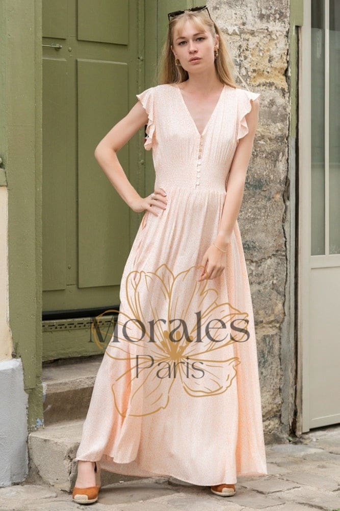 Robe longue bohème abricot