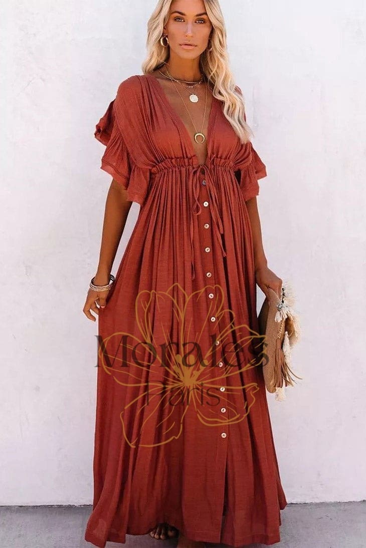 Vous cherchez une robe d’été qui représente le style boho-chic ? Notre Robe Longue Terracotta Bohème est faite pour vous !