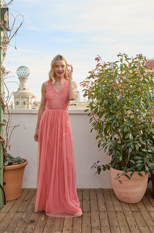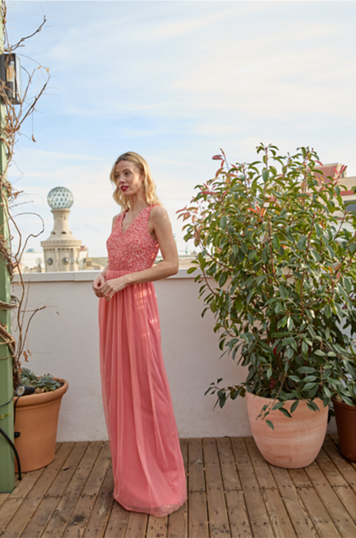 Robe longue tulle et sequins Ceylan corail
