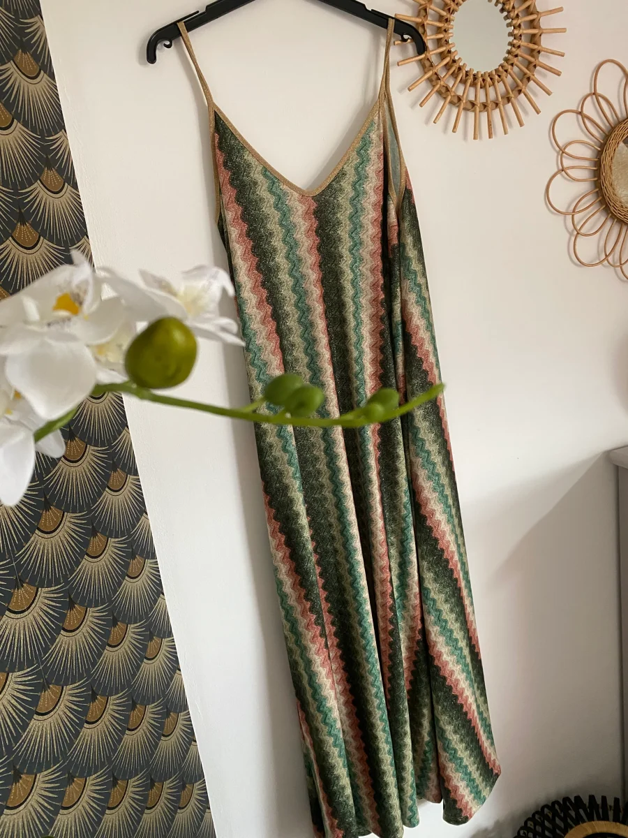 ROBE LUREX BRETELLES FINES KAKI 36/44