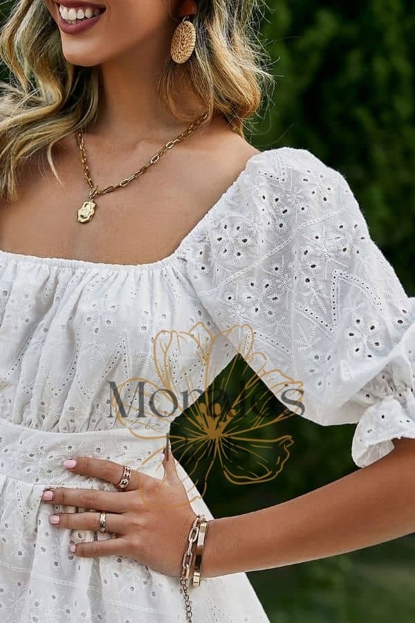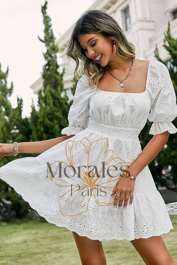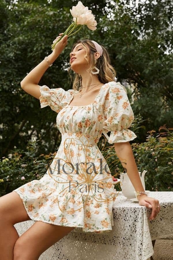 D’un style absolument champêtre, cette robe courte est tout à fait séduisante ! On l’aime pour son look bucolique à couper le souffle et pour sa tendance romantique incontestable.