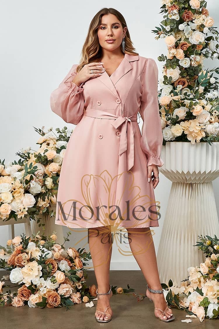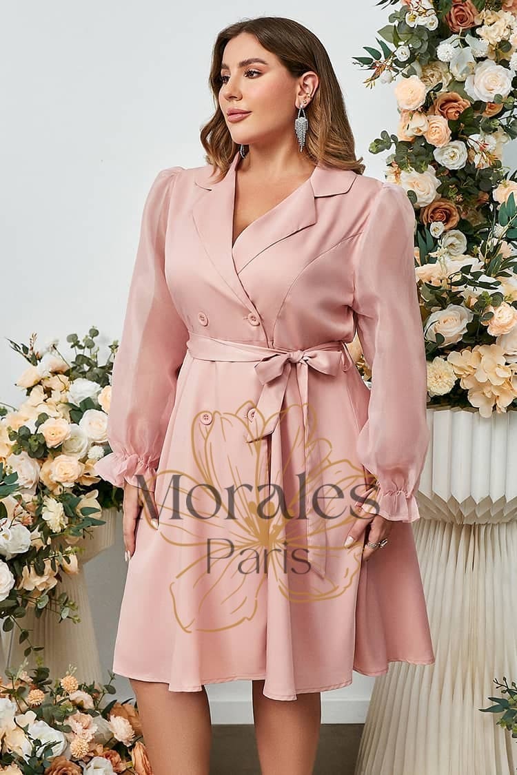 Mais si cette robe champêtre pour femme ronde est aussi réussie, c’est aussi grâce à ses manches volumineuses et à sa forme de blazer. Elles donnent plus de caractère à la tenue de mariage, et s’allient parfaitement à l’esprit champêtre et vintage.