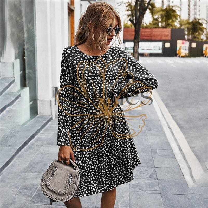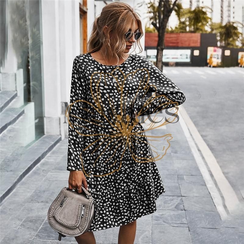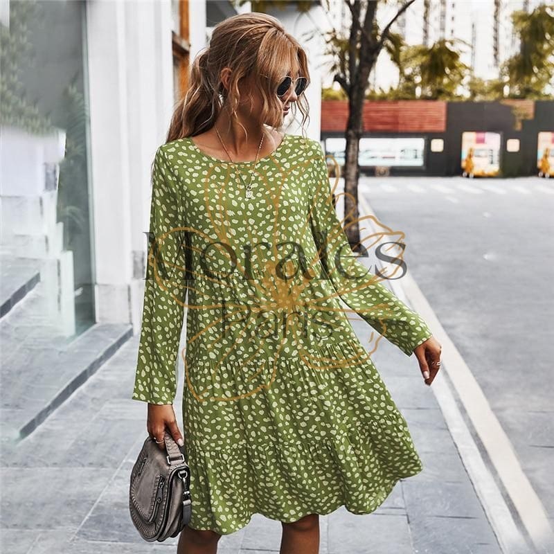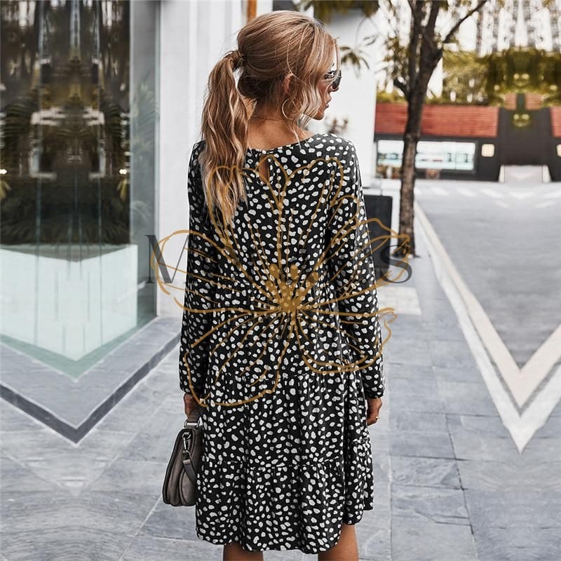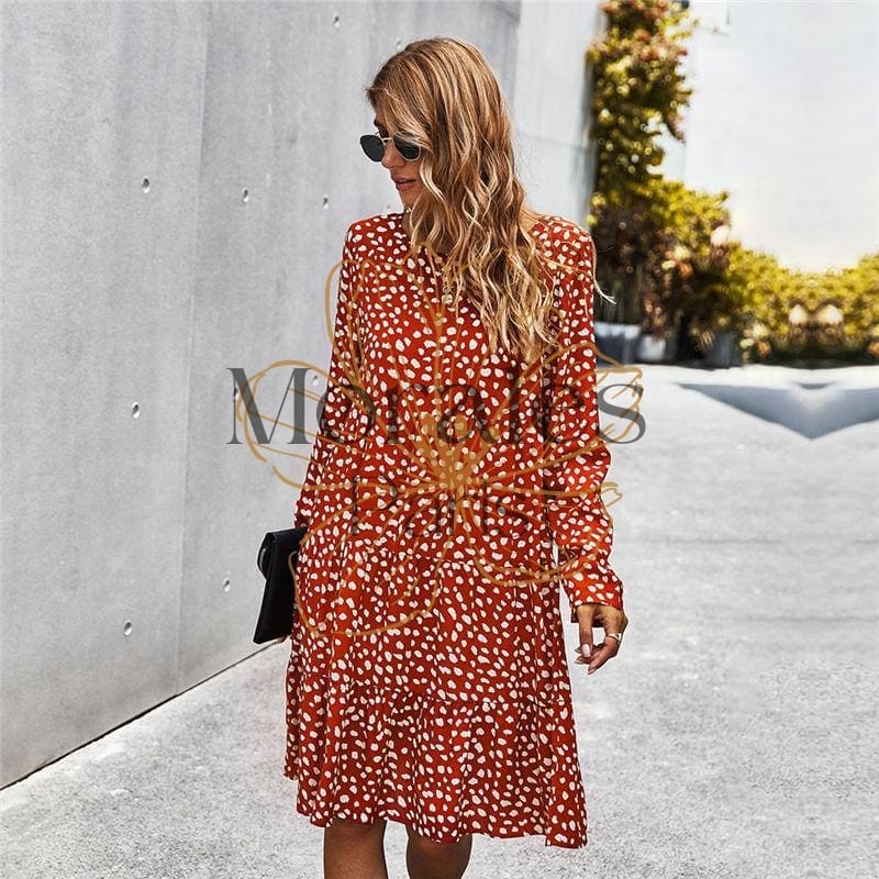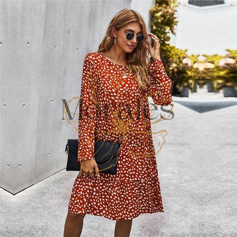 Robe Boho Mi-longue, coupe Trapèze et imprimée à Pois
