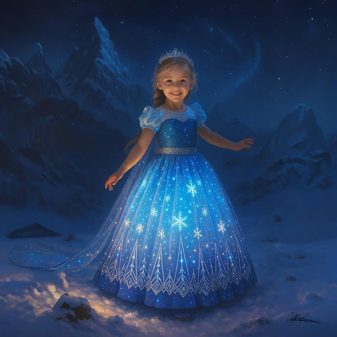 Les LED illuminent chaque moment, et chaque apparition transforme votre petite chérie en reine des glaces !