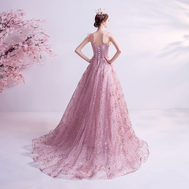 Imaginez une robe qui capture la magie d’un conte de fées ! Avec son rose éclatant, elle incarne la délicatesse et l’élégance féminine. La coupe évasée met en valeur votre silhouette, tandis que le tulle léger crée une sensation aérienne. C’est comme si chaque mouvement révélait des éclats d’étoiles !