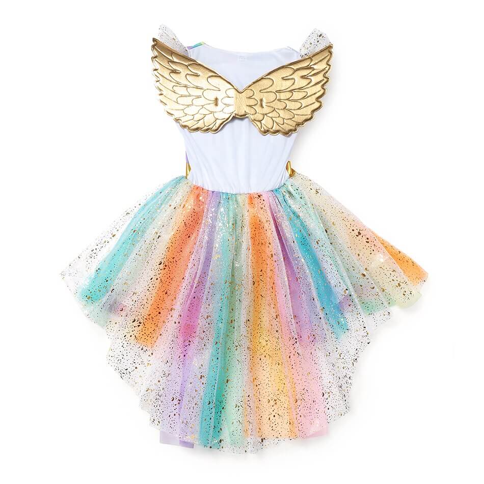 Votre petite aventurière rêve de couleurs éclatantes ? Cette robe de princesse enchanteresse, qui arbore une palette lumineuse allant du bleu au rose, saura la transporter dans un univers où chaque journée est une fête ! Avec ses ailes d’ange scintillantes, elle est idéale pour transformer les anniversaires en véritables contes de fées.