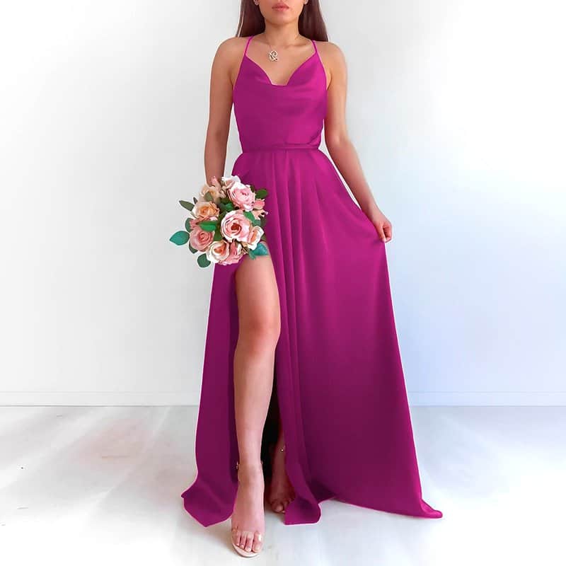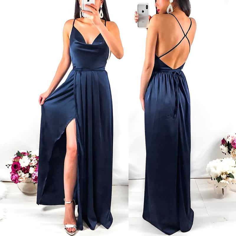 Sublimez chaque occasion avec cette robe satin dos nu, une pièce maîtresse qui associe raffinement et audace. Confectionnée dans un satin fluide, elle épouse parfaitement les courbes tout en offrant un confort inégalé. Son dos nu plongeant attire le regard, promettant une élégance intemporelle lors de vos événements spéciaux. La robe se distingue par sa coupe fluide, une fente latérale pour une démarche gracieuse et des bretelles fines ajustables pour un ajustement parfait.