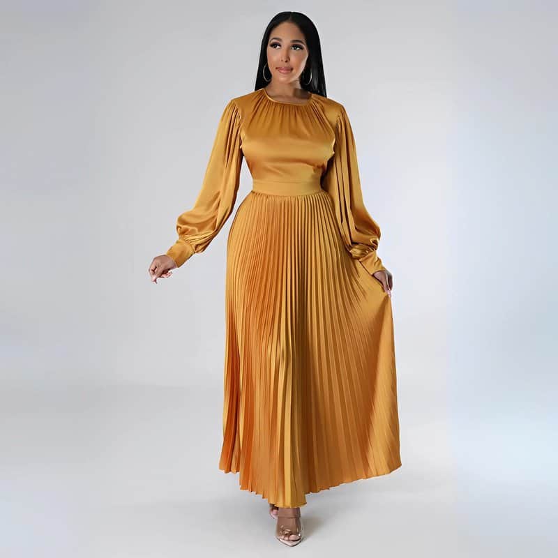 Explorez l’élégance moderne avec notre Robe en Satin Plissé