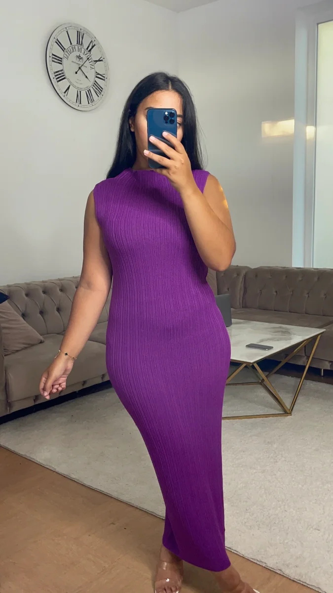 Robe côtelée, offrant une extensibilité confortable et un toucher doux. Son col cheminé ajoute une touche chic. Parfait équilibre entre élégance et confort au quotidien.