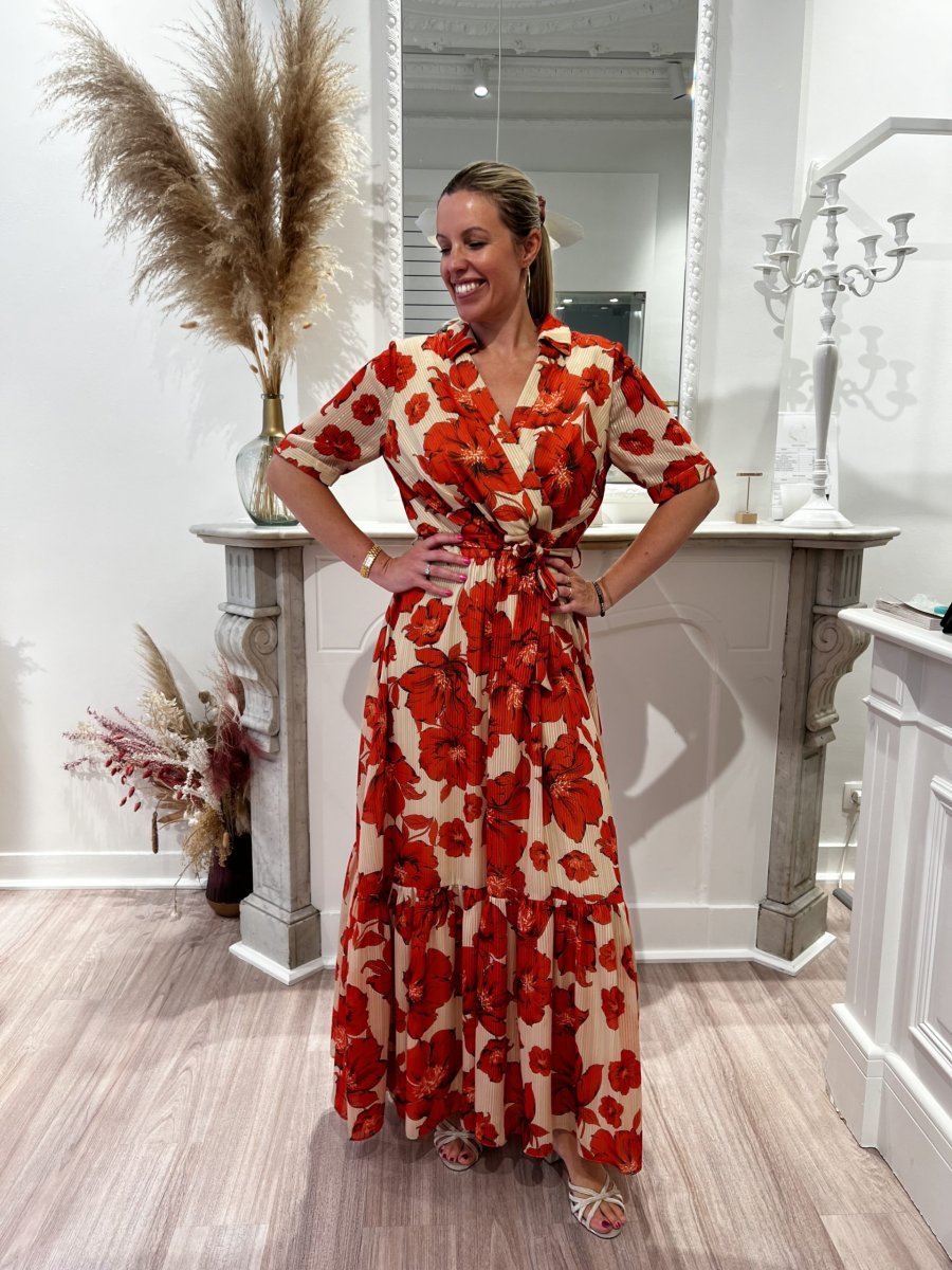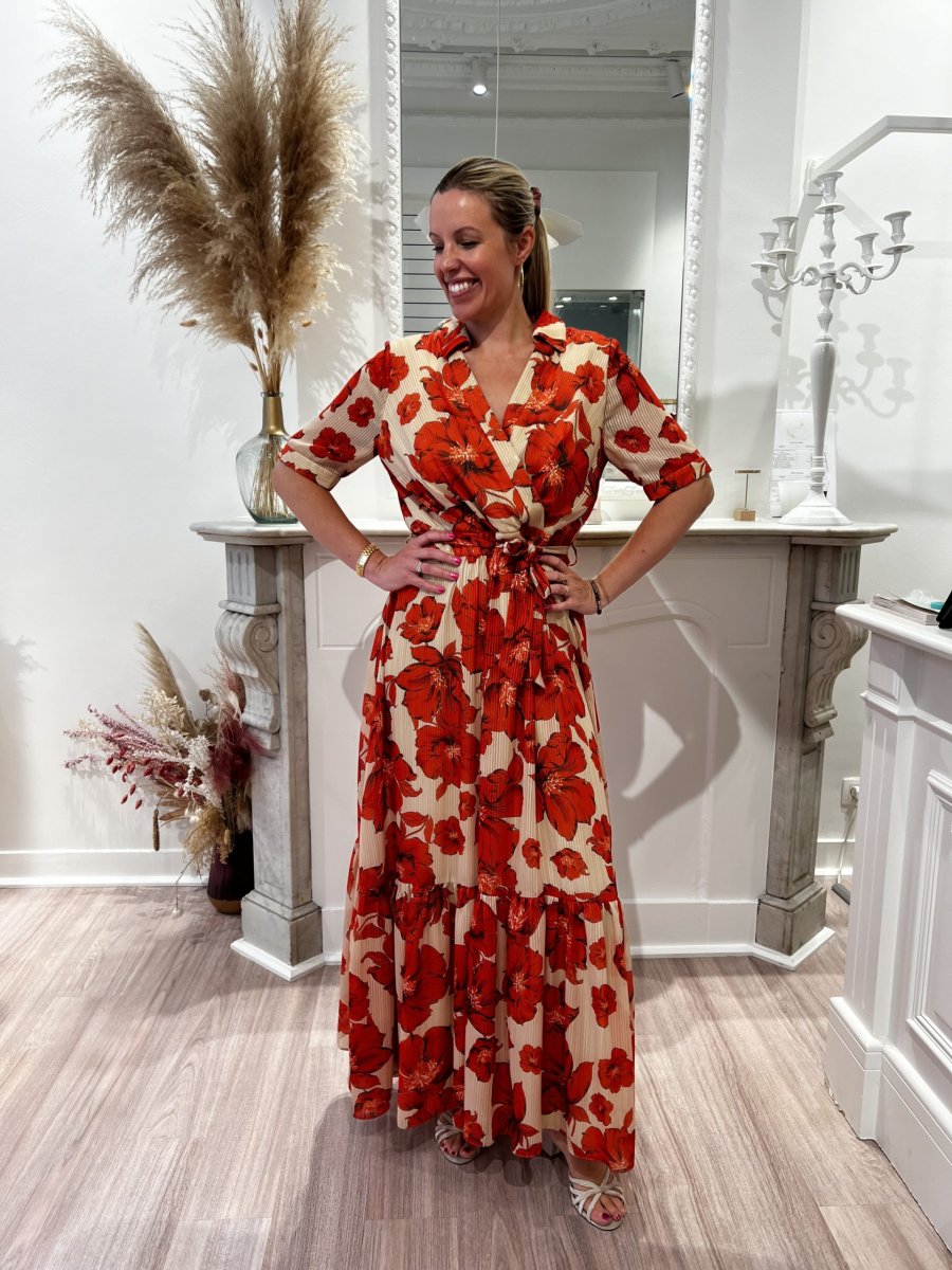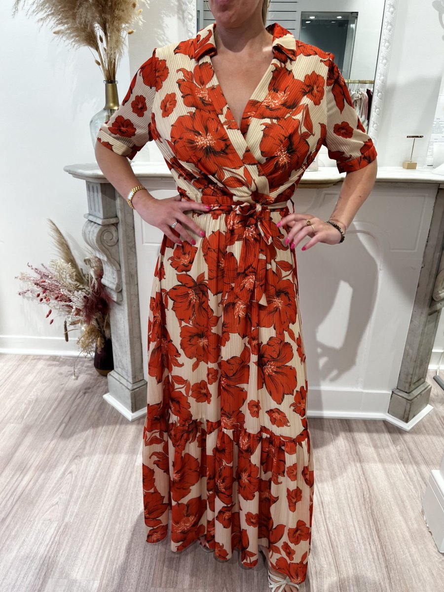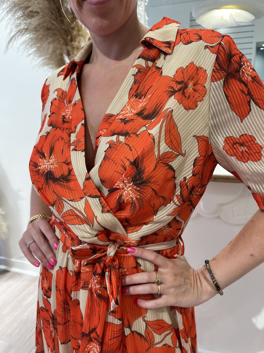 Robe élégante Made In Europe Robe style chemisier Col et manches taillées chemisiers Décolleté cache coeur Ceinturé Long Se ferme à l’arrière par une tirette Taille 42
