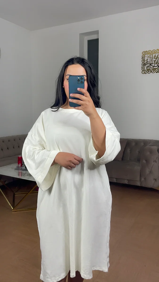 Robe courte style tee shirt(jusqu’au genou), manche longue.