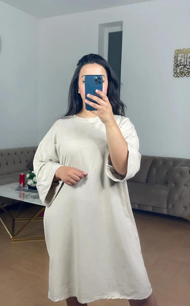Robe courte style tee shirt(jusqu’au genou), manche longue.