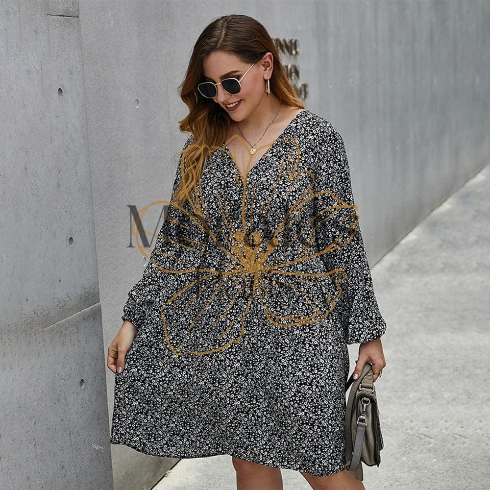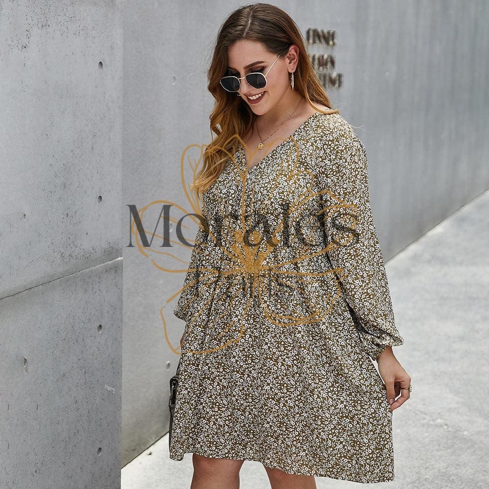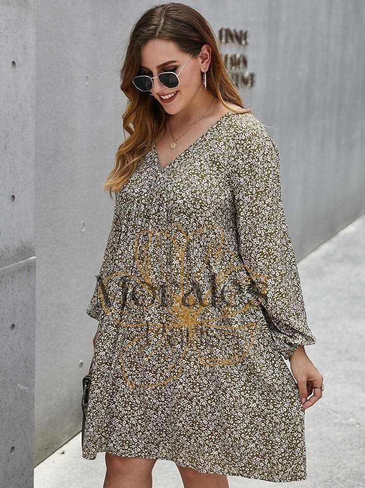Cette jolie robe bohème est à la longueur idéale et s’adapte à toutes les morphologies. Sa coupe trapèze vous permettra de passer un été agréable et léger. Légère, joliment fleurie, elle peut être portée avec des collants et un petit gilet. Disponible en vert olive, bleu marine très élégant ou en noir intemporel.