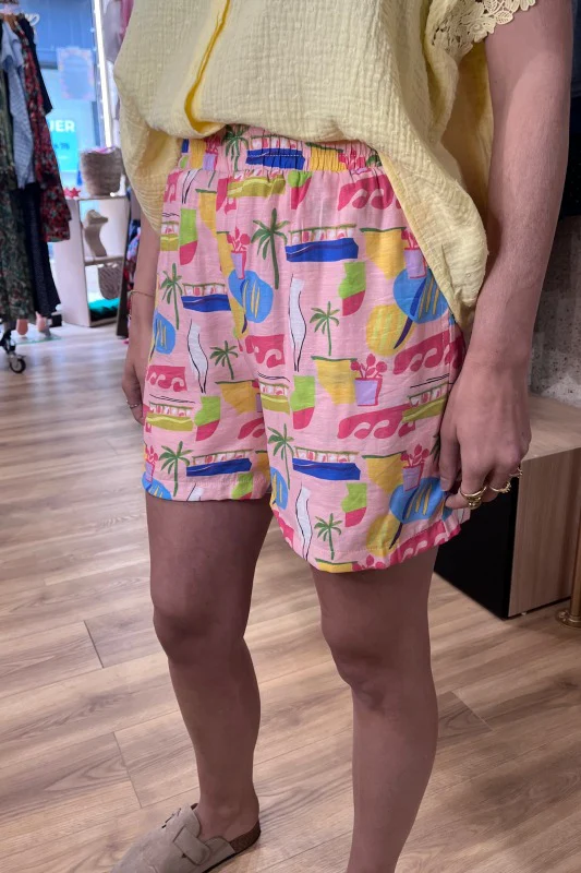 Affirmez votre style avec ce short rose aux motifs colorés, parfait pour les journées ensoleillées. Conçu dans un mélange léger de rayonne et de nylon, il offre une sensation de fraîcheur sur la peau, tandis que sa doublure 100% coton assure un confort optimal tout au long de la journée.