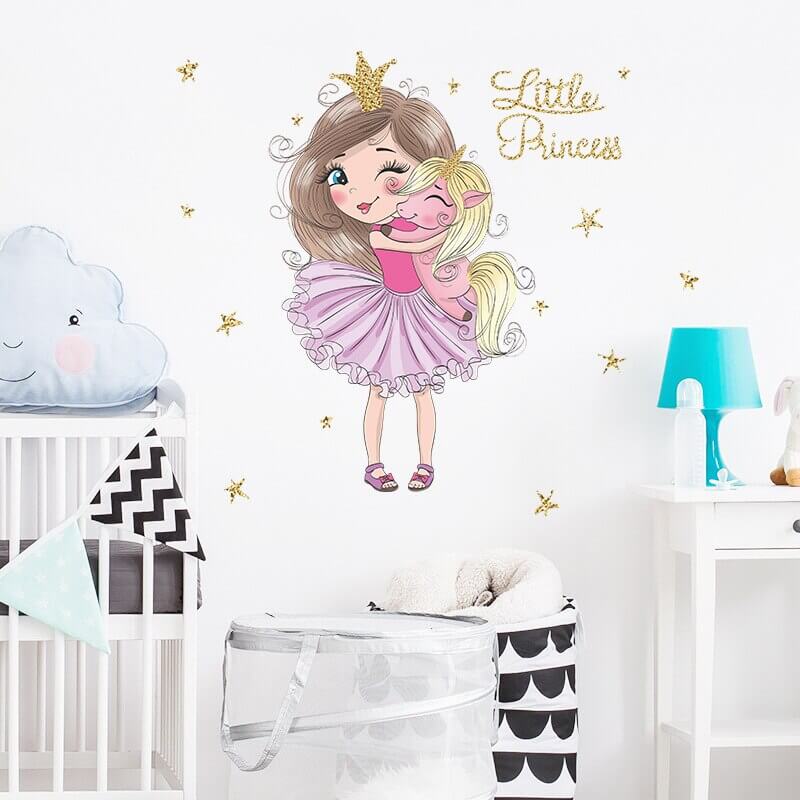Offrez une touche unique à la chambre de votre petite avec nos stickers muraux enchantés. Ces adorables autocollants illustrent parfaitement le monde magique rempli de princesses et de licornes ! Si votre fille est fascinée par les royautés, les jolis chevaux à corne et les somptueuses robes de bal, ce sticker mural de princesse deviendra le héros de son décor.