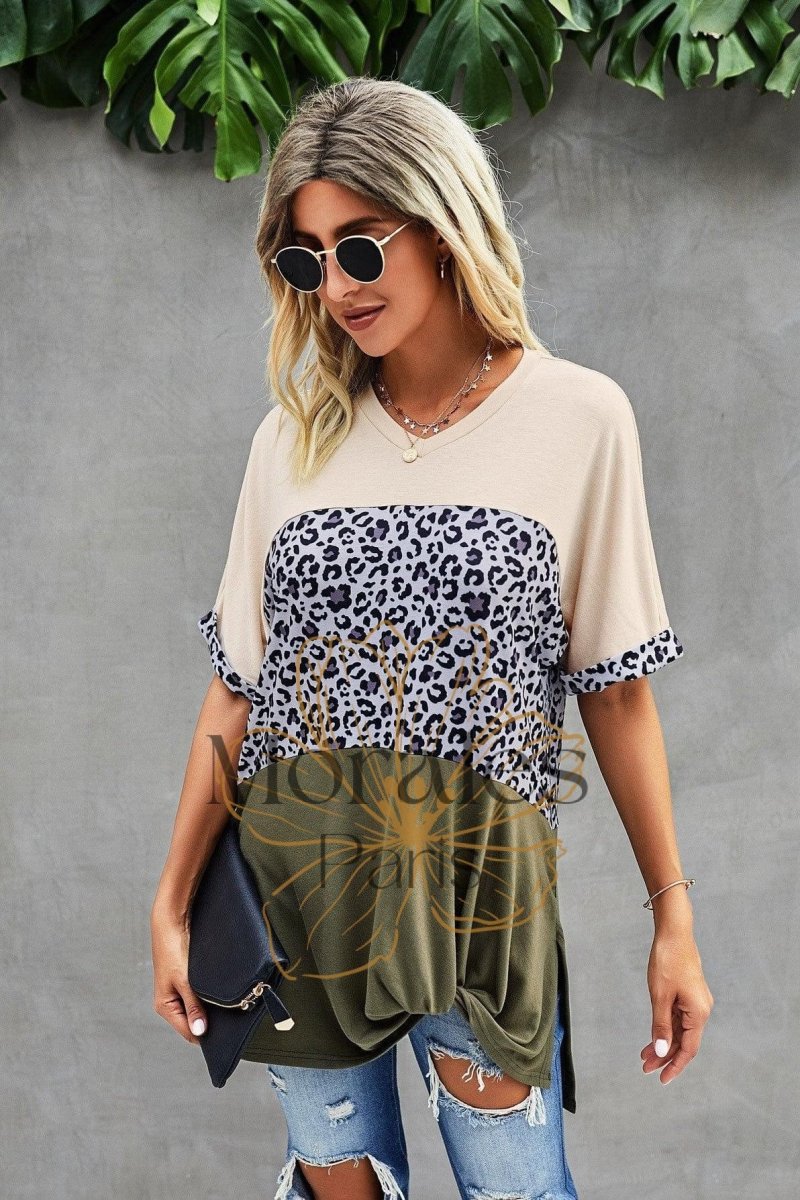 Invitez-vous à adopter l’originalité de cette tunique bohème inspirée de la mode gypsy. Disponible en vert, noir ou blanc, ce modèle à manches courtes est orné d’un magnifique motif léopard gris et se marie parfaitement avec un legging, un pantalon ou un jean. Avec un effet loose, vous serez libre de mouvement.