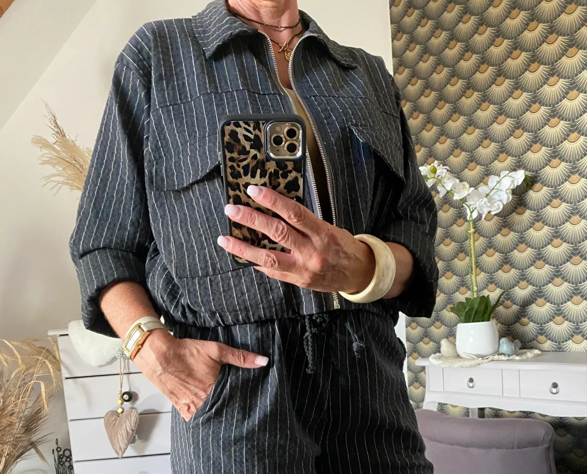 VESTE FINES RAYURES GRIS ENTRACYTHE TU 36/44
