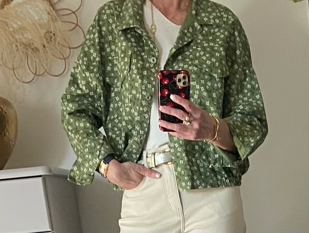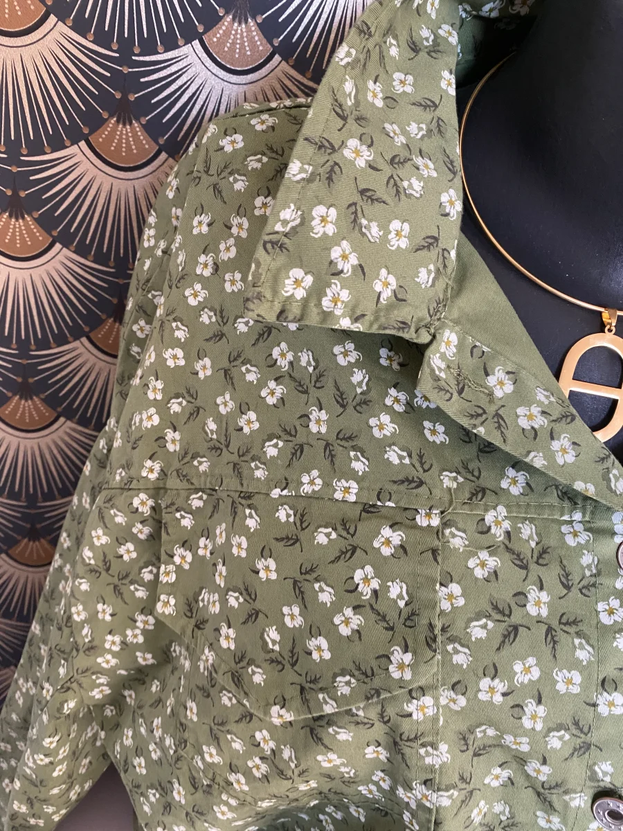 VESTE FLEURS CORINNE KAKI TU 38/44 petit 46