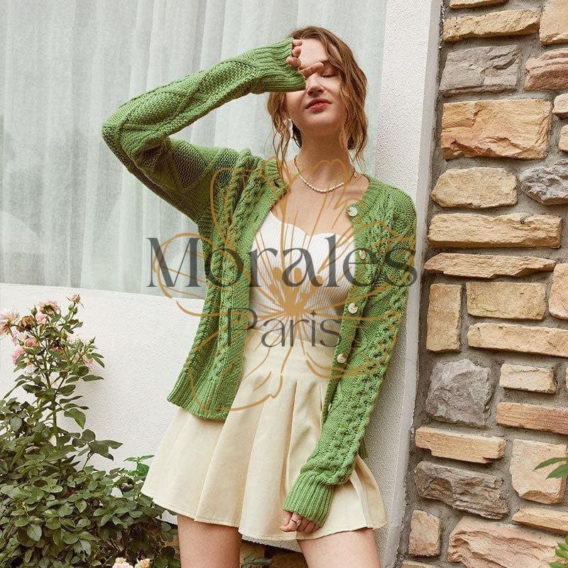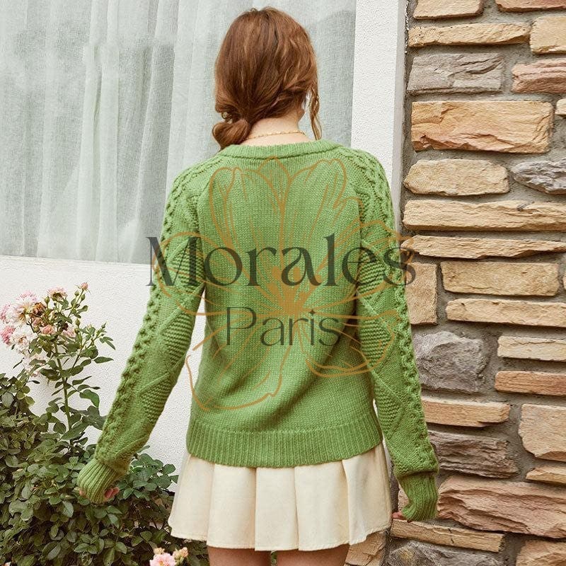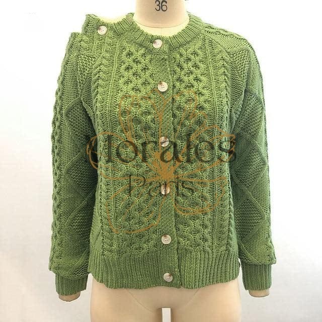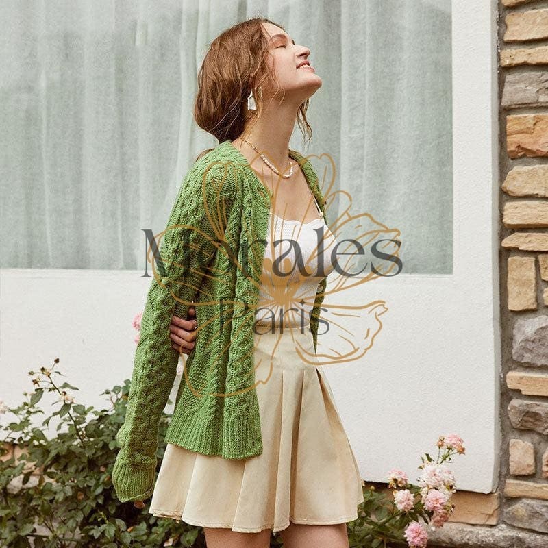 Restaurez votre chaleur corporelle avec cette veste pull bohême verte kaki qui s’harmonise parfaitement avec les couleurs de la saison automnale. D’une longueur idéale, elle est dotée d’un col rond, des manches à la forme chauve-souris et se ferme à l’avant par des gros boutons. On la remarque à cause de ses motifs constitués de plusieurs torsades plus ou moins larges sur l’avant et l’arrière.