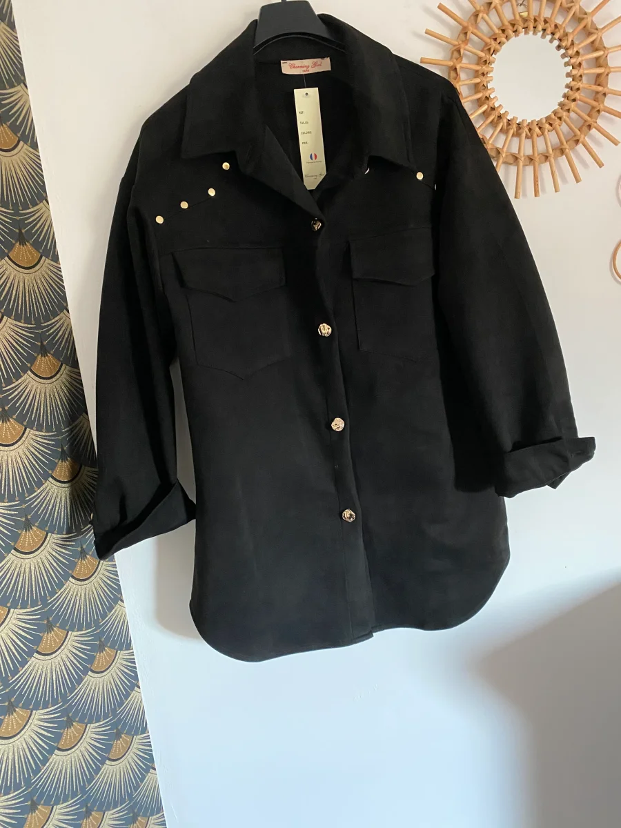 Veste suède coupe chemise ,fermeture par boutons dorés , deux poches sur le devant ,et boutons aux manches