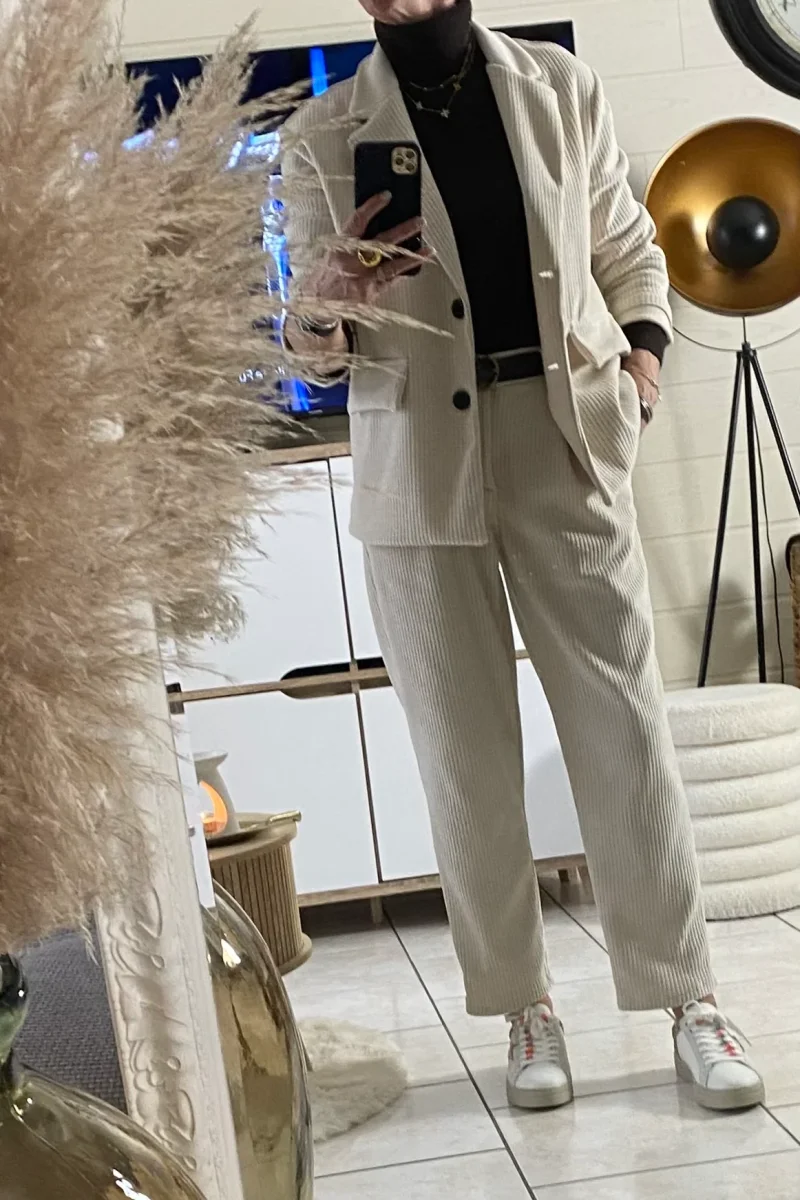 Veste en velours cotelé , fermeture par deux boutons , deux fausses poches