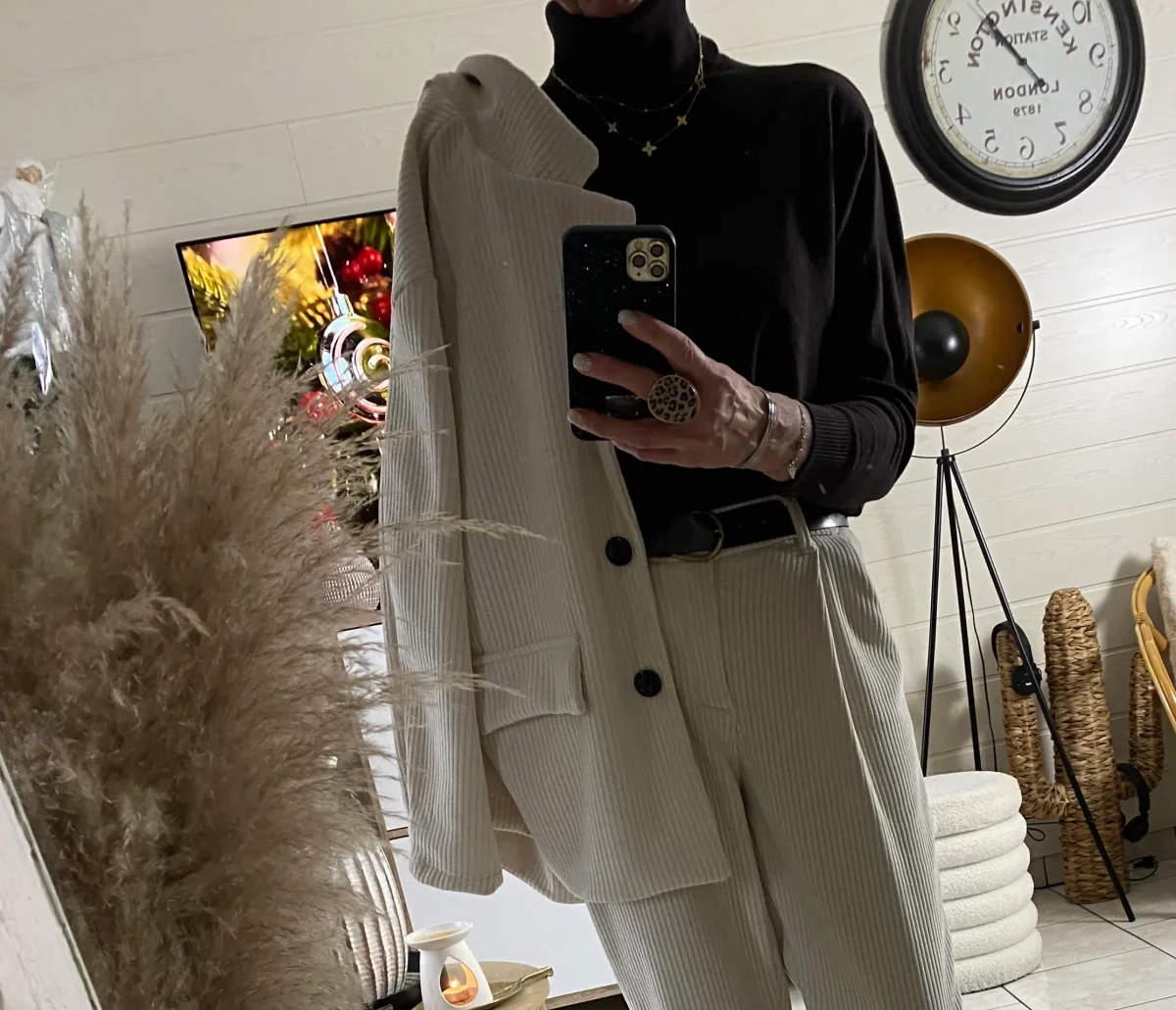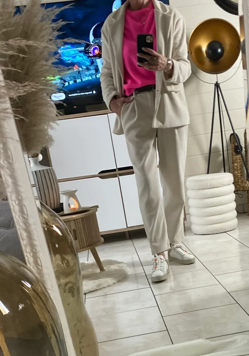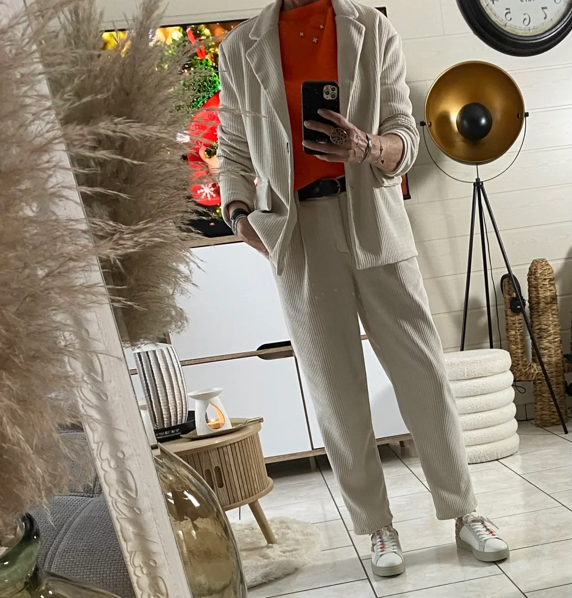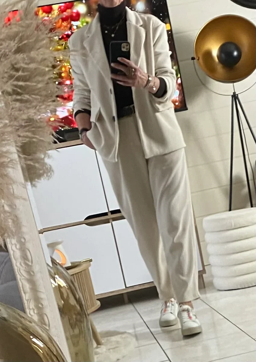 Veste en velours cotelé , fermeture par deux boutons , deux fausses poches NOUVEAUTE MADE IN ITALIE 98% POLYESTERE 2% ELASTHAN LONGUEUR 68 CM LARGEUR 63 CM